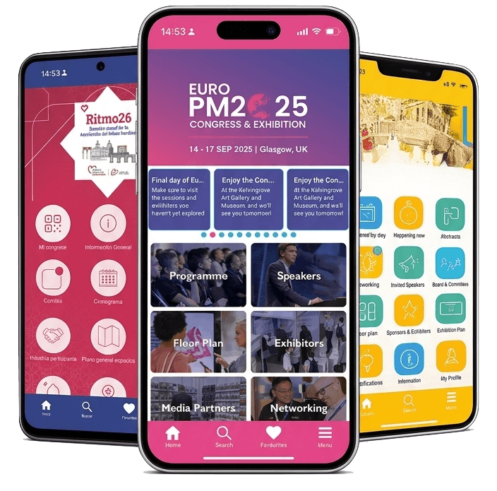 At KingConf, we create unique experiences with our custom applications for events, congresses, conferences, conventions, incentive trips and more. Each design is carefully tailored to reflect the identity of your event, providing not only intuitive functionality, but also an aesthetic that captivates your participants. Transform the way your events are perceived and experienced with our cutting-edge technology solutions.